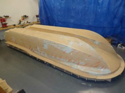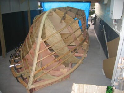 Stage 1 Preparing the Jig for Planking Overview Of Cold Mold Construction Building A Proper Base Setting up the Jig The Longitudinal Structures Stage 2 Preparing the Hull for Flipping. (Plank, Glass, Fair, Prime) Molding The Plywood Hull Fiberglassing Fairing Stage 3 Finishing the Topsides (Preparing the Boat For Rigging) The Big Flip Fiberglassing The Inside Laying Out The Interior Fitting The Bulkheads Building The Deck Stage 4 Rigging (Preparing the Boat for Launch) Fitting Hatches Accessories & Superstructure Installing The Fuel Tank