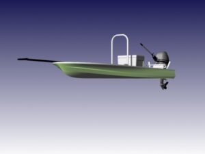 The Skiff Recon is perfect for fishing along coast lines and in shallower waters. It can float on a puddle, and run all day long on three gallons of gas!