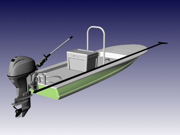 The Skiff Recon is perfect for fishing along coast lines and in shallower waters. It can float on a puddle, and run all day long on three gallons of gas!