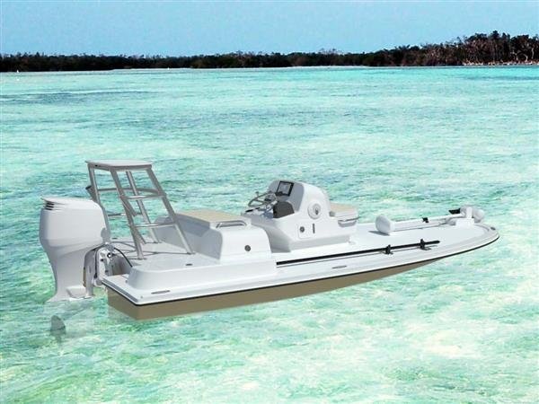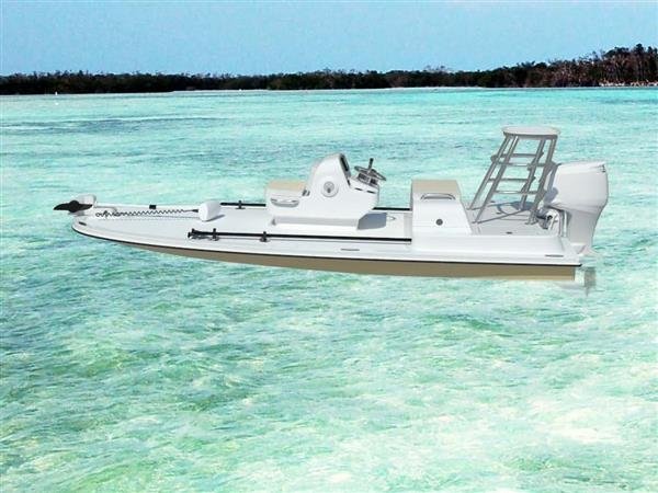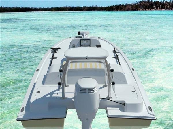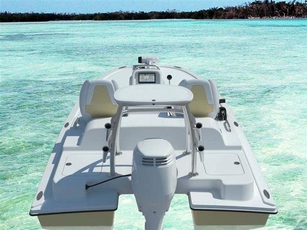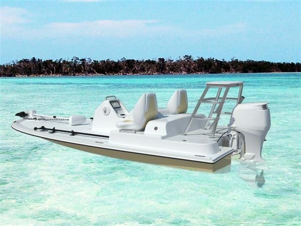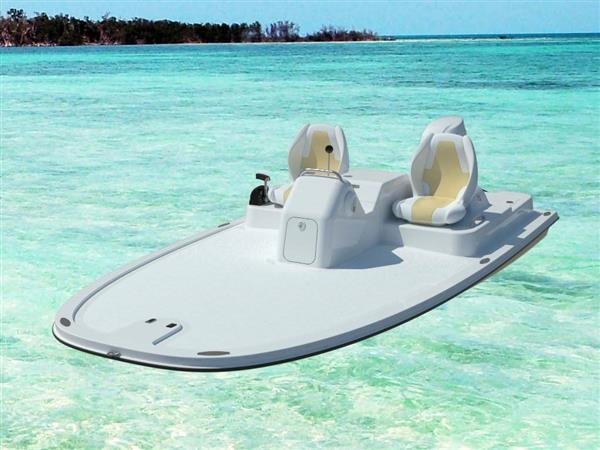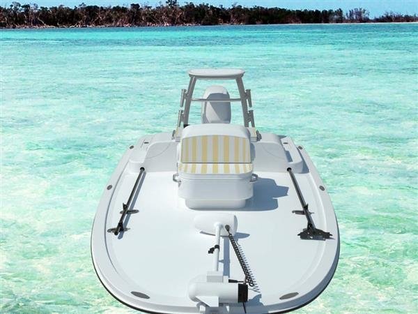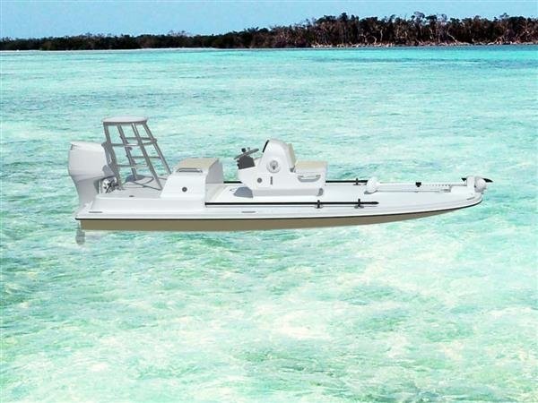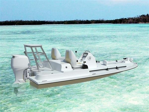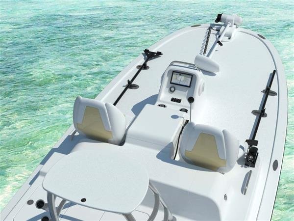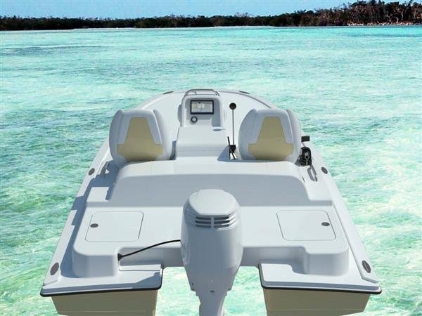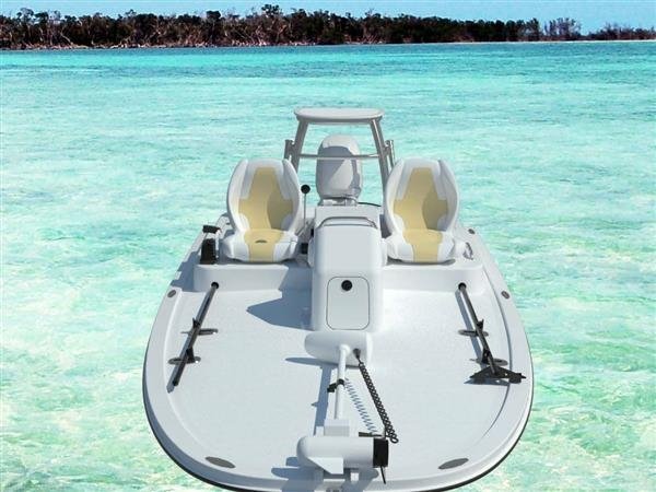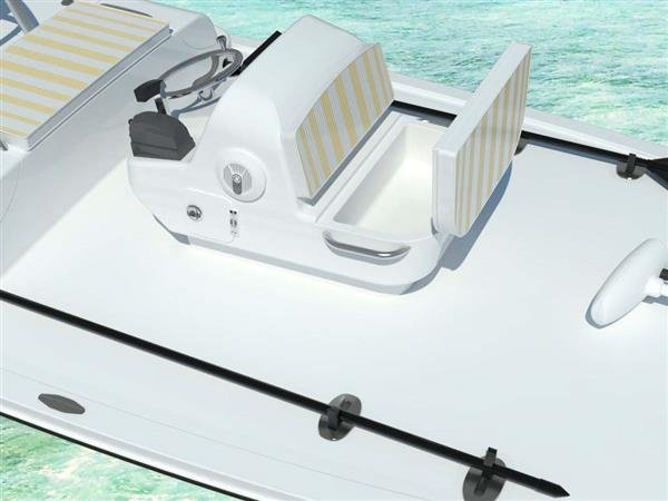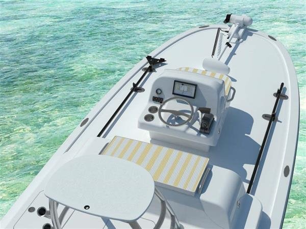 We just want to do some fly-fishing and we thought a big clean wide and stable deck would be perfect. Keeping her simple, we gave her highly-responsive stick steering and very comfortable seats. If she were bigger I'd stand up to drive but in this size and in a boat meant for flat / skinny water, this seemed the answer for how I will use her.