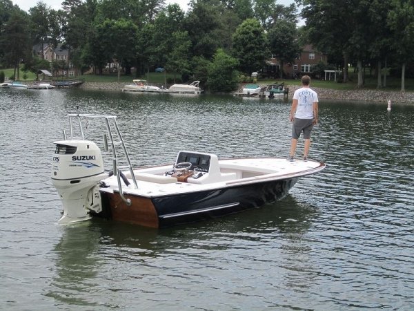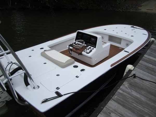 This platform provides the ability to mount bigger, heavier four-stroke power. With its wide sidedecks you can concentrate on landing the fish and not where you stand. We have recently updated her to include a handsome rounded transom!