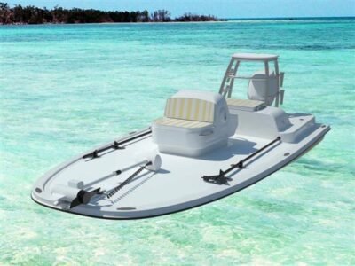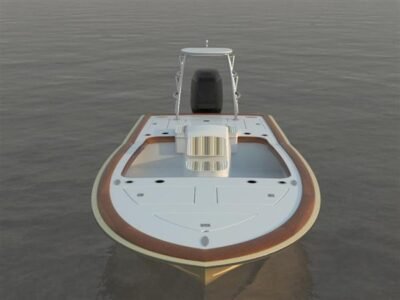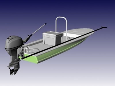 As first real “technical skiff”, she is designed for complete composite construction. She is small and light and will get you into ankle deep water. Put a mud motor on her and have some real fun in the skinny water!