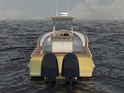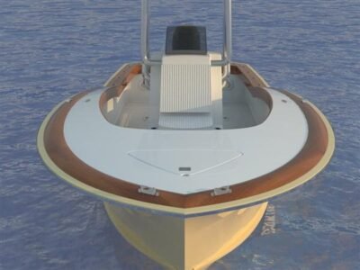 This boat combines the Carolina characteristics – a good dose of bow flare and tumblehome. We know it will be talked about wherever it is tied up.
