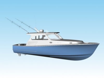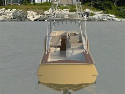The 27 Inboard Express “Wahoo” is a close cousin of our popular 26 Outboard Express. We tweaked her lines a little to give her a better shaft angle and she became a 27.